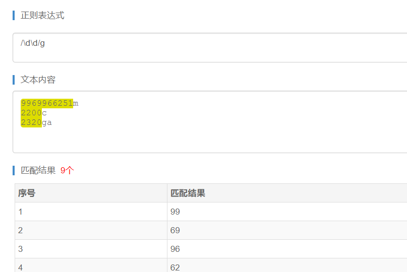 /#[0-9A-F]{6}/g{n,m}: 出现了 n-m 次{n,}: 出现了至少 n 次