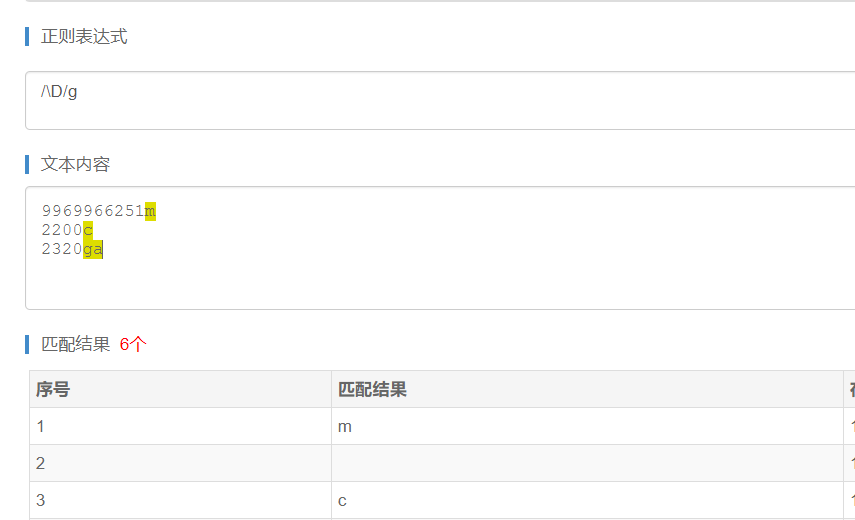 ?出现 0/1 次 eg:/a?/g+: 匹配 1 个或多个标记 eg:/a+/g*: 出现任意次{n}: 出现 n 次匹配大写的六个字符的十六进制颜色代码